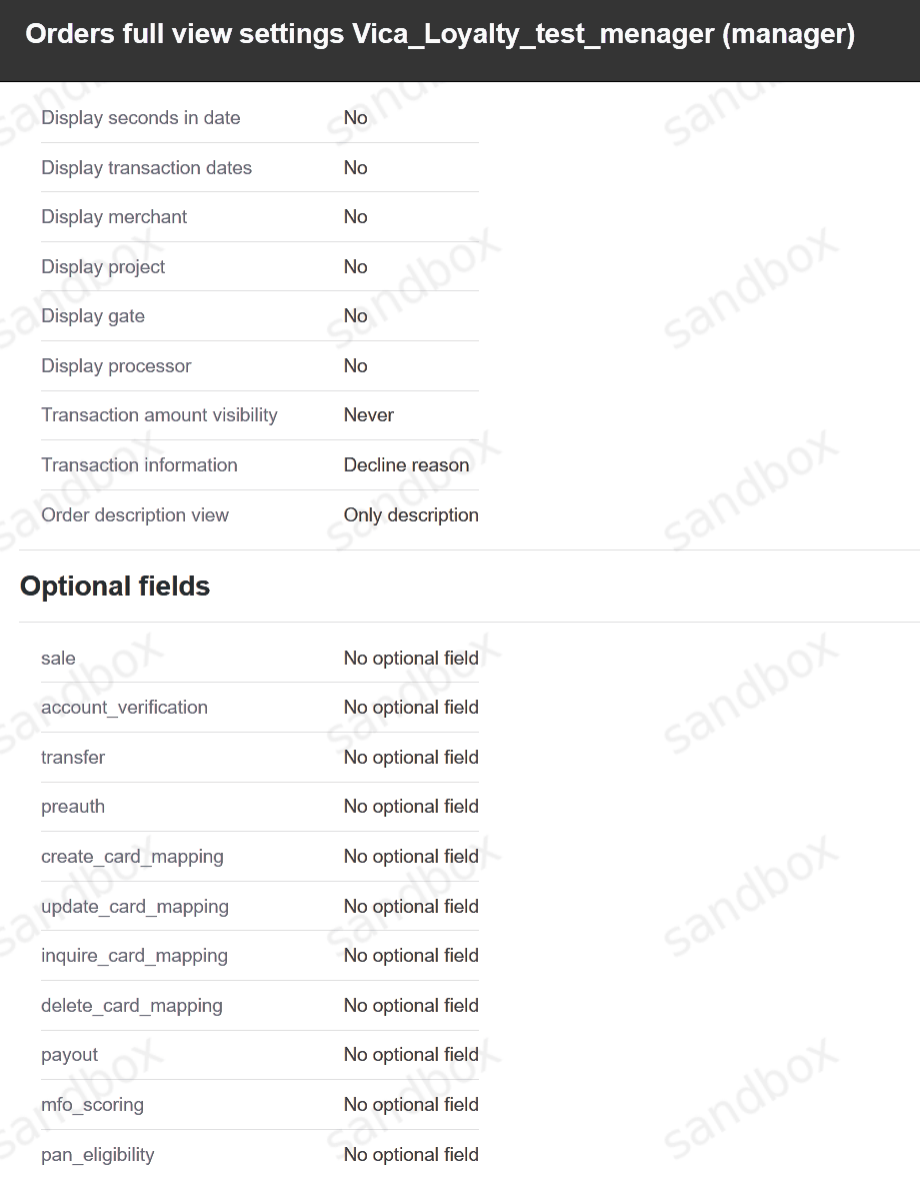 In this section it is possible to configure visible fields for detailed view in orders: